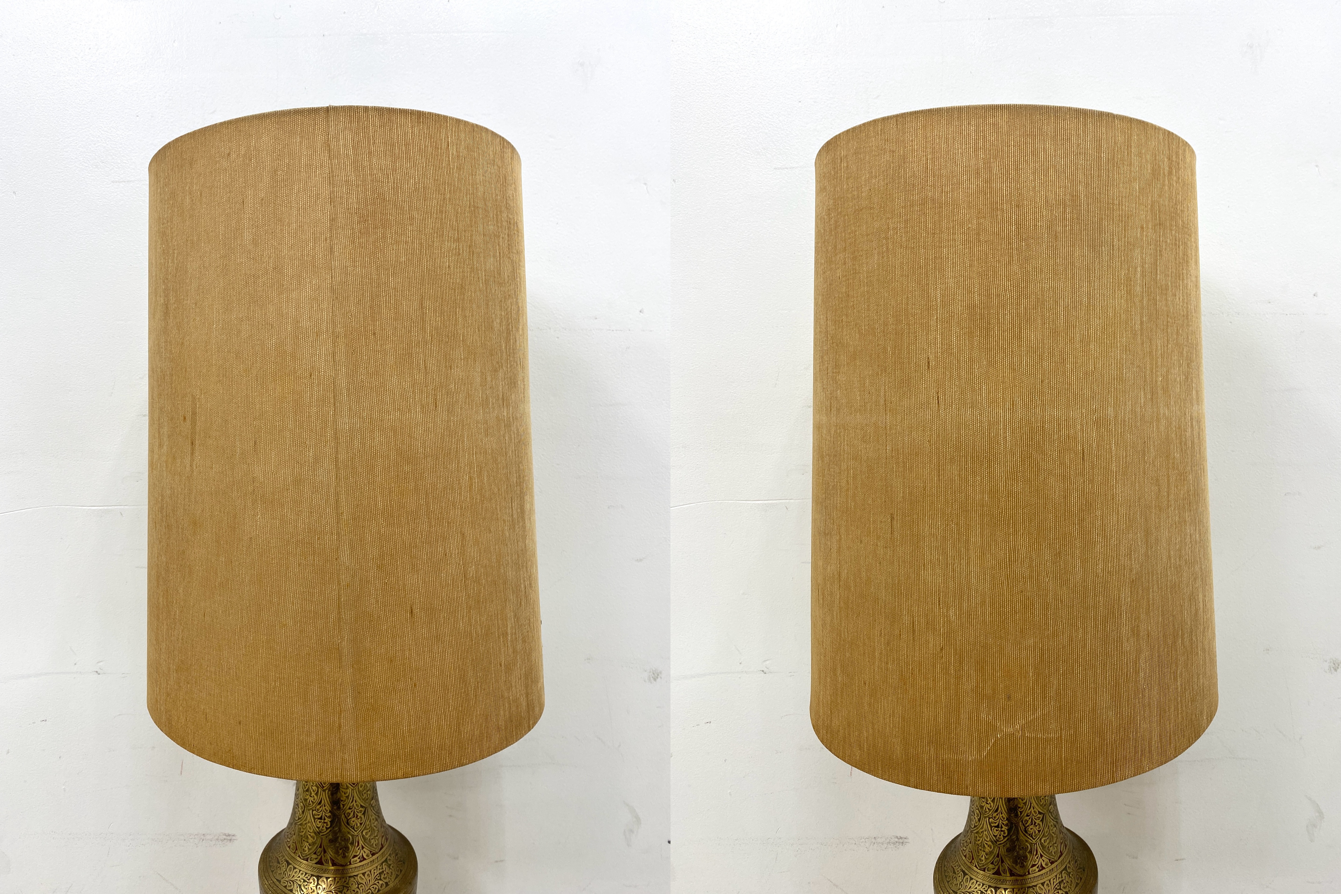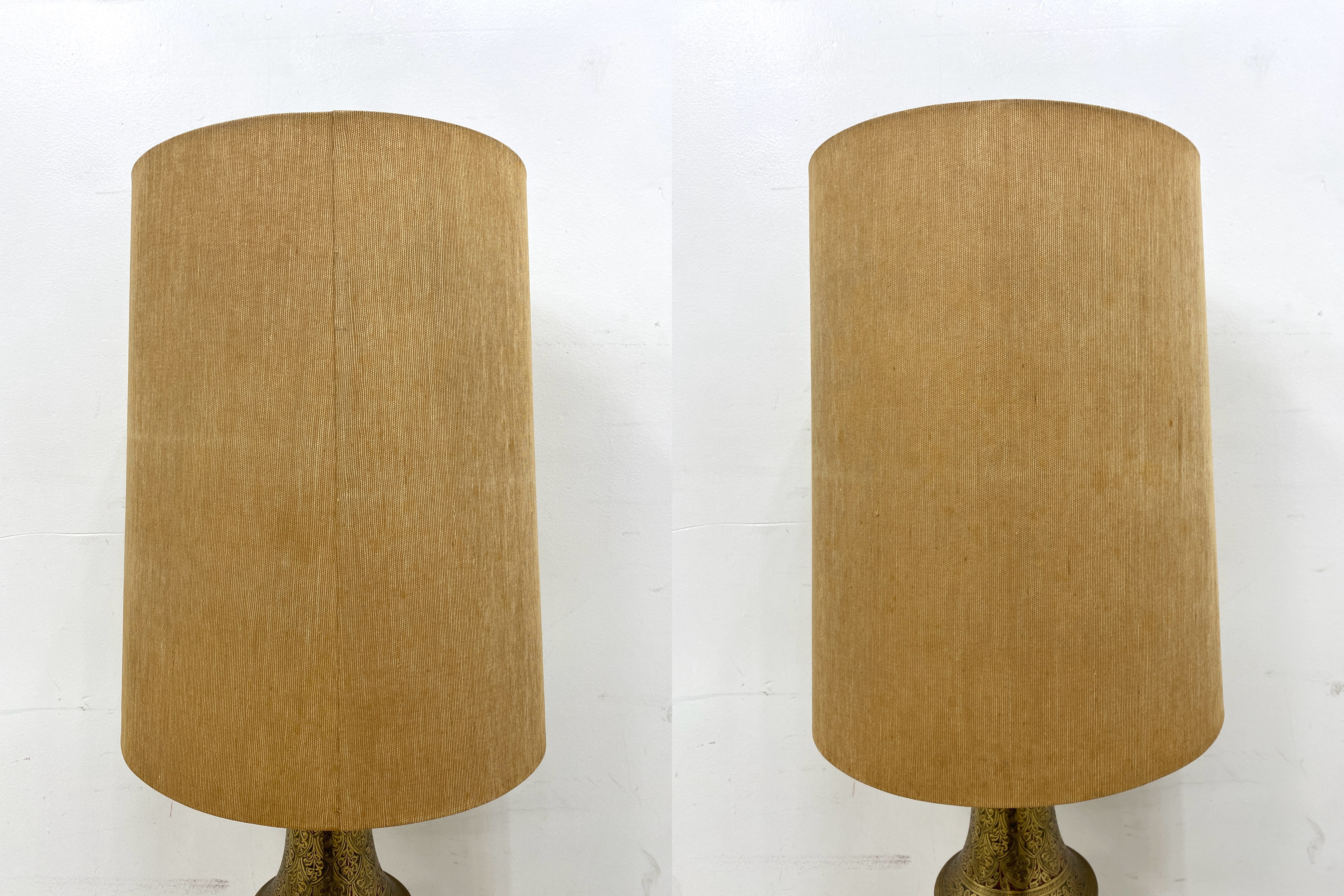 60年代ヴィンテージ■テーブルランプ ブラスベース×布製シェード 高さ102cm 真鍮 彫刻 ゴールド ヨーロッパ アンティーク レトロ 卓上 金