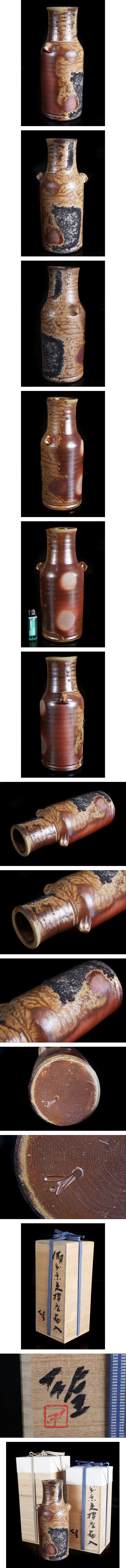 人間国宝 藤原雄 最上位作 晩年 備前窯変擂座花入 抜群の窯変! 共箱 二重箱 本物保証F41 收藏