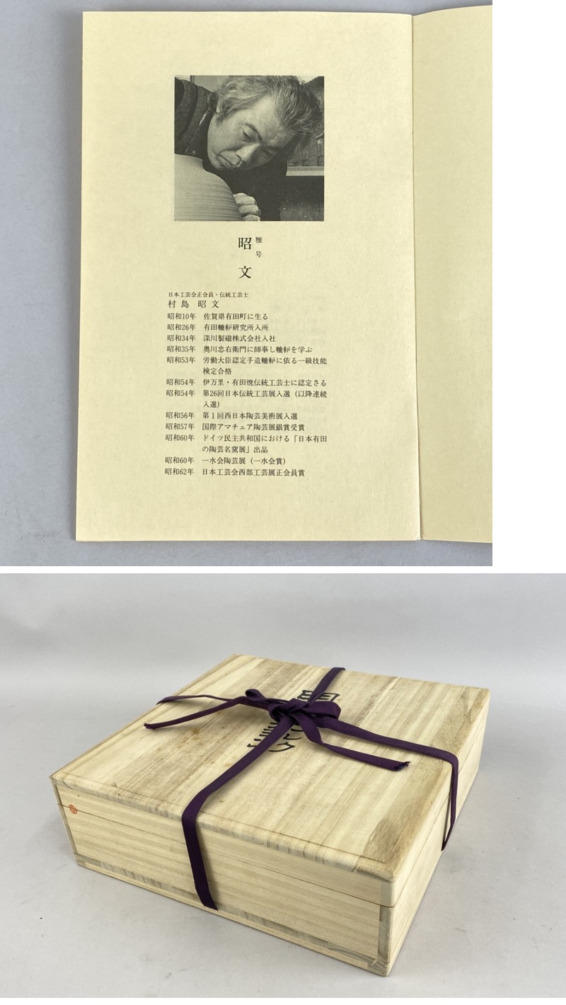| ◇商品情報◇ | 当店の商品をご覧いただきありがとうございます!! 深川製磁 限定 5/1002 明瓷コレクション 伝統工芸士 村島昭文 皿 黄地青花紋 直径26cm 飾り皿 有田焼 になります。 サイズ:直径 約26cm、高さ 約5.3cm 保管時の薄擦れはございますが、欠け等の目立つダメージはございません。 状態などは画像を参考の上、ご検討をよろしくお願い致します。 ※目視チェックをしていますが、古物品の場合、見落としや細かな擦れ・薄汚れなどがある場合もございますので予め画像をご確認の上でご入札をお願いいたします。 商品のトップ画像端に写っている茶筅はサイズ比較用の備品ですので付属はしません 当店は信州上田に店舗を構え、県内の旧家や蔵より買い付けの際に出てきました物を出品 しております。 タイトルや文章など当店主観の判断ですので見識の相違などございませぬ様、画像でご確認くださいませ。 当時物や古物品では時代による劣化や痛みなど、何らかの瑕疵はあるものとしてご承知願います。 画像による判別が難しい場合や、画像にない箇所などで気になる場合は事前にご質問等でお問い合わせ下さい。 ご入札時には画像を良くご確認頂き、自己の責任のもとでオークションにご参加下さい。 | ||||||||||||||||||||||||||||||