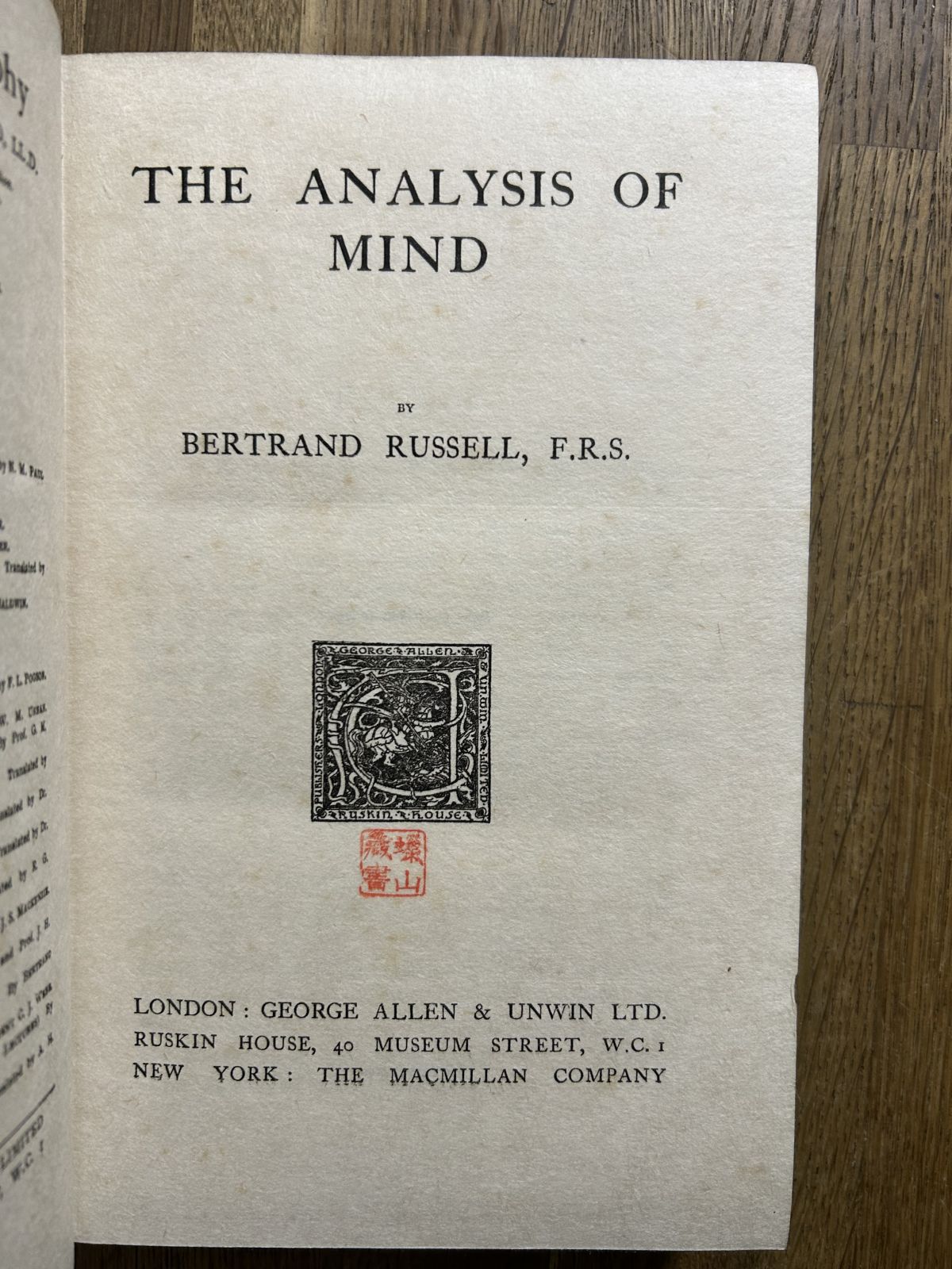 1921年初版 ラッセル 心の分析 Bertrand Russell, The Analysis of Mind 英文洋書古書 收藏