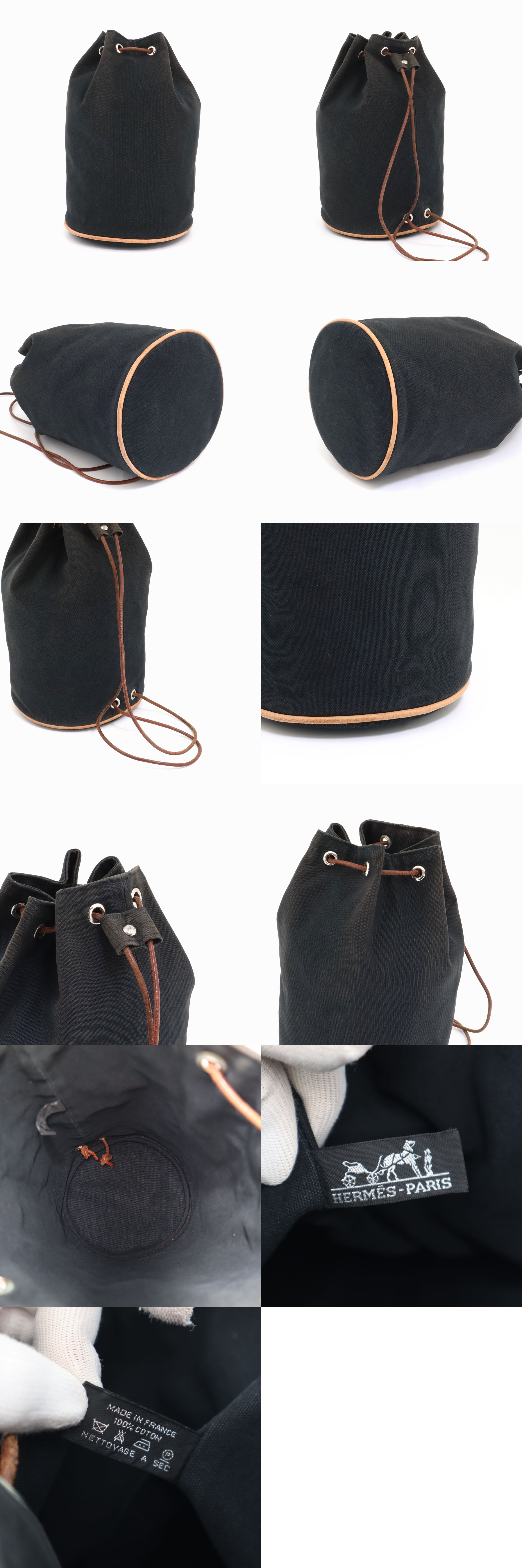 エルメス HERMES ポロション ミミルPM ショルダーバッグ 巾着型 ブラック コットン キャンバス レザー レディース 收藏