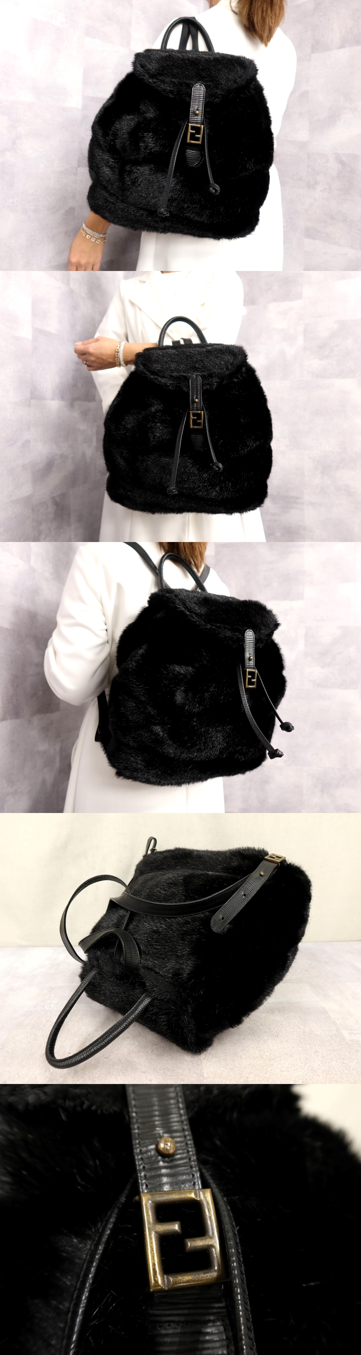 ●超美品●FENDI フェンディ●FF金具●エコファー エピ レザー 本革●リュックサック●黒●A4 収納●書類 かばん●Js62977 收藏