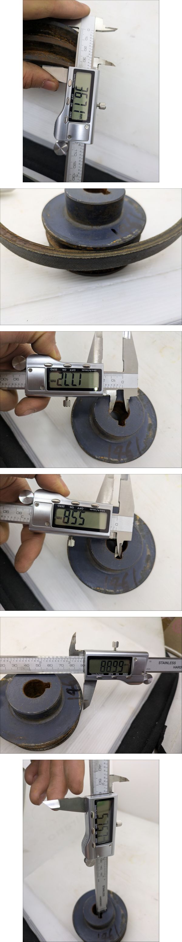 | ●●最後まで読んで下さい●●納得した上でご入札してください●● ●大型機械用のアカウントは**こ ち ら**です。 ●当方の別出品物を同時購入しても送料分安くなりません。 ●発送料金は入札ボタン付近にあり、沖縄、北海道、離島以外一律です。 ●塩尻市から発送します。 ●離島発送はできない場所がございますので、事前にお問い合わせください。 ●発送日は月、水、金、日です。急ぎの場合はご連絡をお願いします。 ------------------------------------------------------------------------------------------- ●2連のプーリーです。 ●Aベルトです。 ●軸 径:約Φ18mm ●鍵 幅:約5mm ●プーリー外径:約Φ89mm ●全体 厚さ:約51mm ●ベルト部 厚さ:約36mm ●書いたインクは消さずに発送します。 ●素人寸法のため、測定誤差があります。 ●中古品のため、サビや汚れがあります。 ●錆は各自で取り除いてください。 ●現状写真の通りのまま送ります。 ------------------------------------------------------------------------------------------- ●下の方にも画像がございます。※たまに写真の枚数が不足していて画像がない場合があります。 ●落札後、ご指定配達の時間帯がある場合はあらかじめご連絡してください。 | |||
