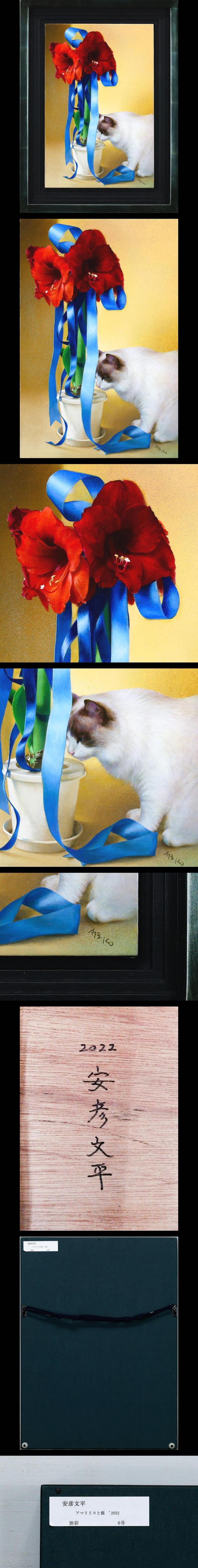 【真作】【WISH】安彦文平「アマリリスと猫」油彩 6号 2022年作 ◆リアリズム・赤花と愛らしい猫名画 〇宮城教育大学准教授 #25122175 收藏