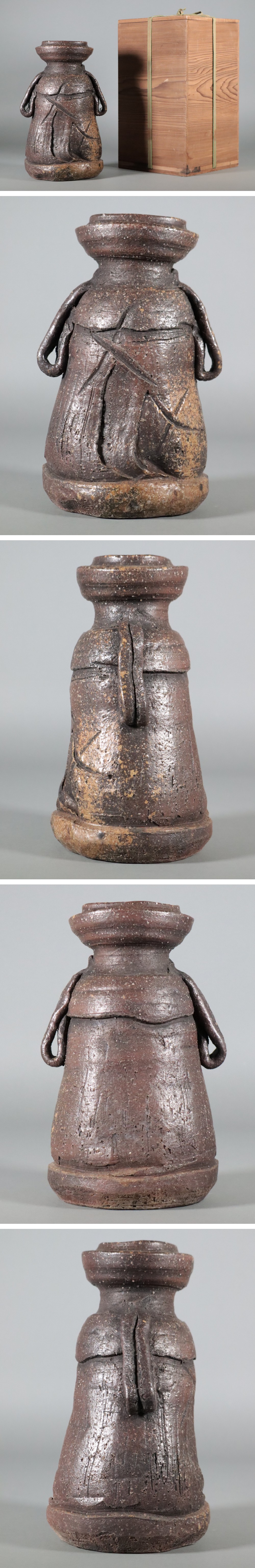 時代物 桃山時代 / 古田織部 御庭焼 伊賀焼 古伊賀 双耳 耳附 耳付 花生 / 古陶磁製 花器 花瓶 花入 骨董品 古美術品 / 高さ29,5cm 收藏