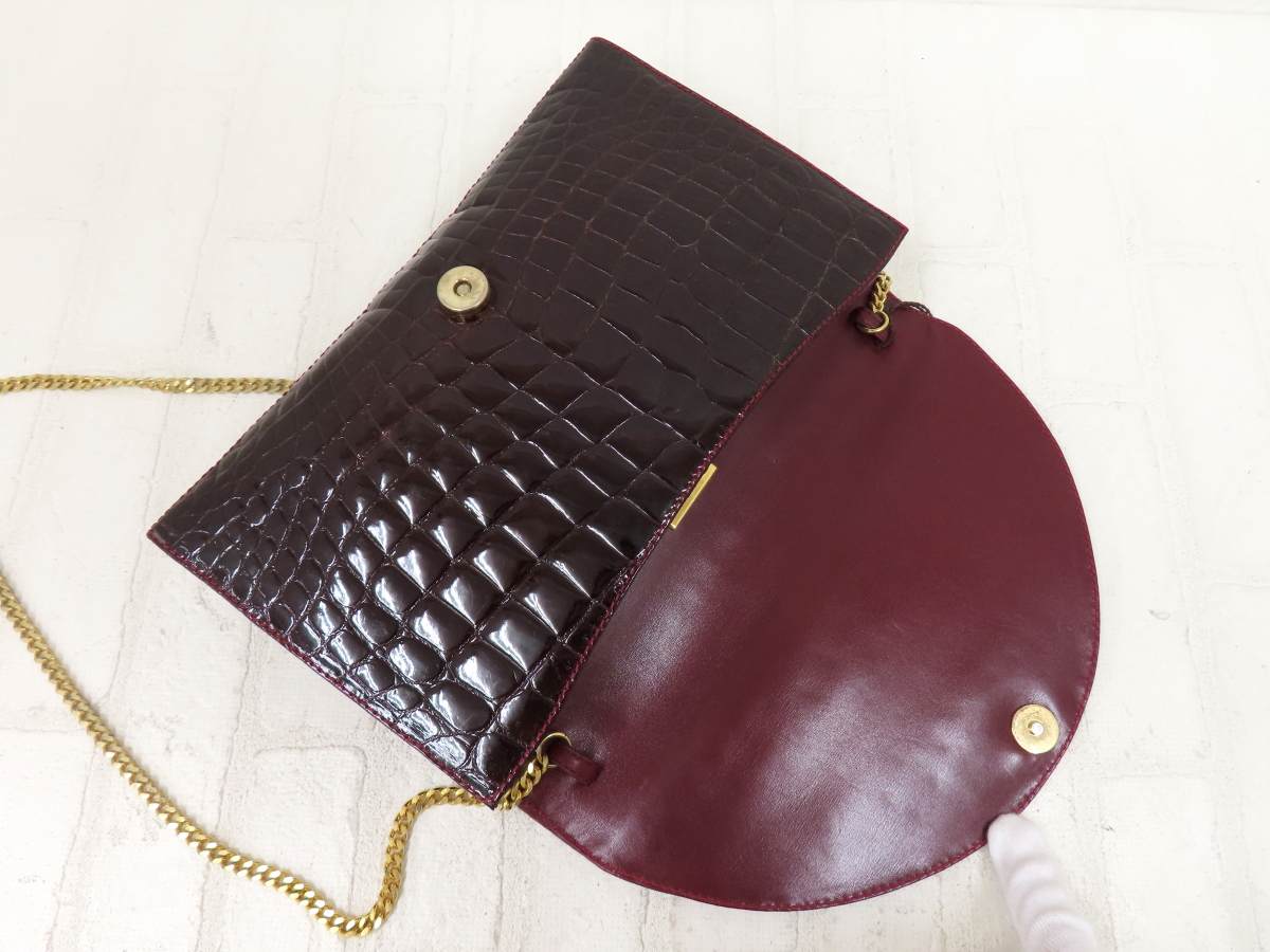 ◆美品◆ZAGLIANI ザリアーニ◆シャイニング クロコダイル 本 ワニ 革◆チェーン ショルダー バッグ◆ボルドー ゴールド金具◆A14840 收藏