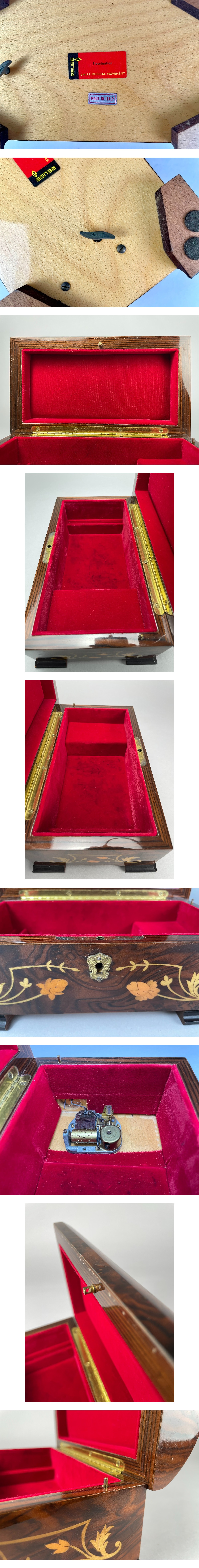 A812 REUGE オルゴール付 ジュエリーボックス◇リュージュ イタリア製 高級象嵌 スイス製ムーブメント 宝石箱 動作確認済 鍵なし 收藏