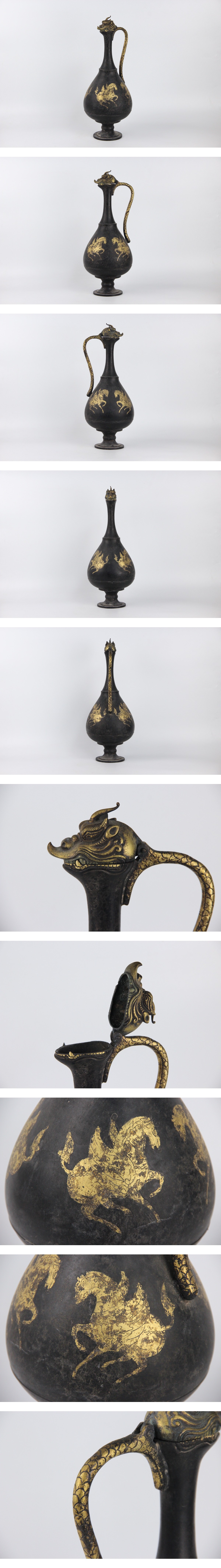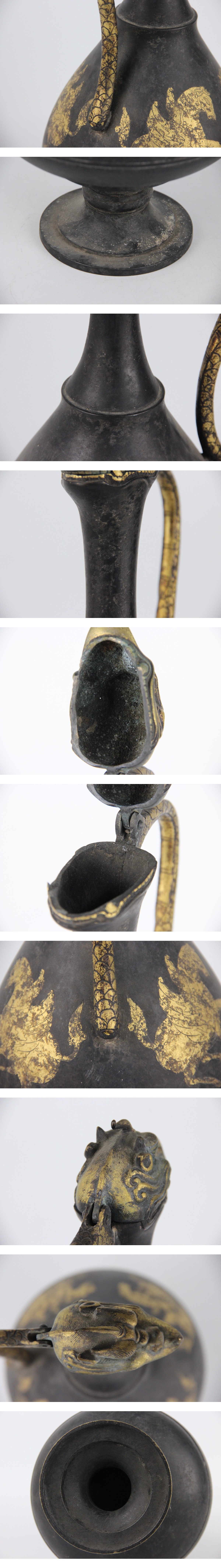 古美術品 古銅 鍍金 竜首 水瓶 胡瓶 浄瓶 高約48cm 正倉院宝物 国宝法隆寺献納御物写 時代物 唐物 ED11-28 收藏