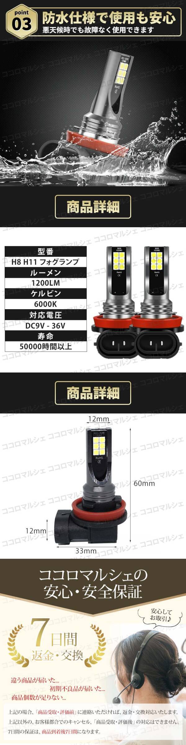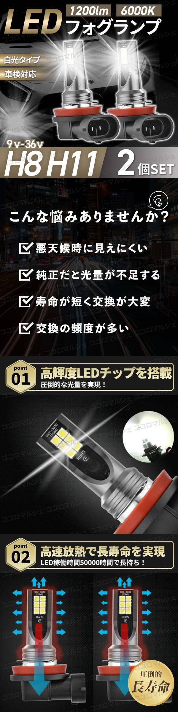 LED フォグランプ ヘッドライト バルブ H8 H11 H16 2個 セット 車 6000K 1400lm 汎用 交換 爆光 ホワイト 白 長寿命 高輝度 パーツ カー 收藏
