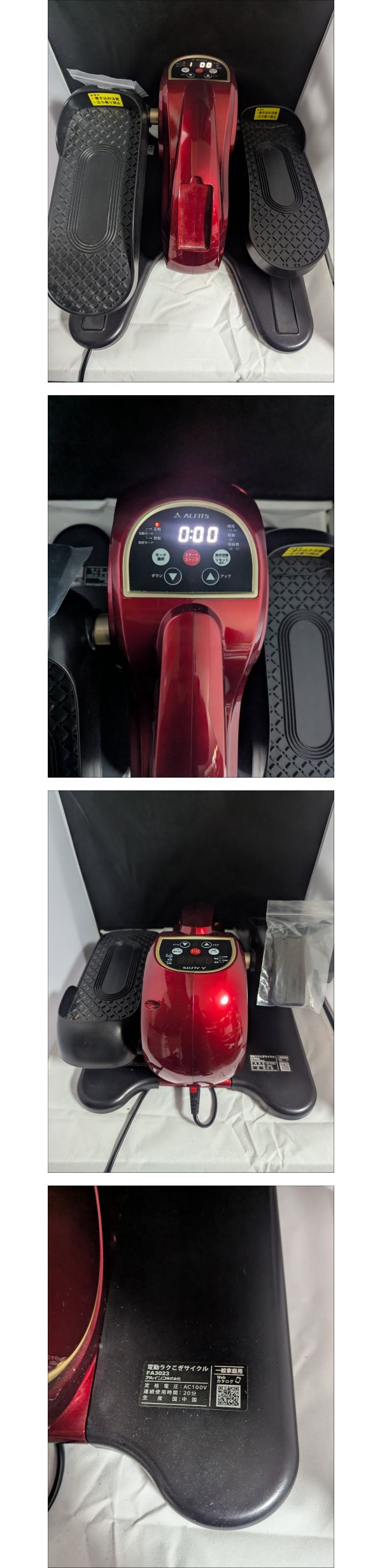 | 商品説明 | 【商品について】 ご覧いただきありがとうございます。 この度出品いたしますのは「 ●アルインコ ALINCO 電動ラクこぎサイクル FA3023 エクササイズマシン 健康器具● 」でございます。 個人所有物の整理のため、出品する運びとなりました。 中古品ではございますが、ご活用いただける方にお譲りできれば幸いです。 商品の状態、付属品、寸法等につきましては、掲載写真にてご確認をお願いいたします。 補足:当方、ペットの飼育および喫煙の習慣はございません。お気にされる方はご参考ください。