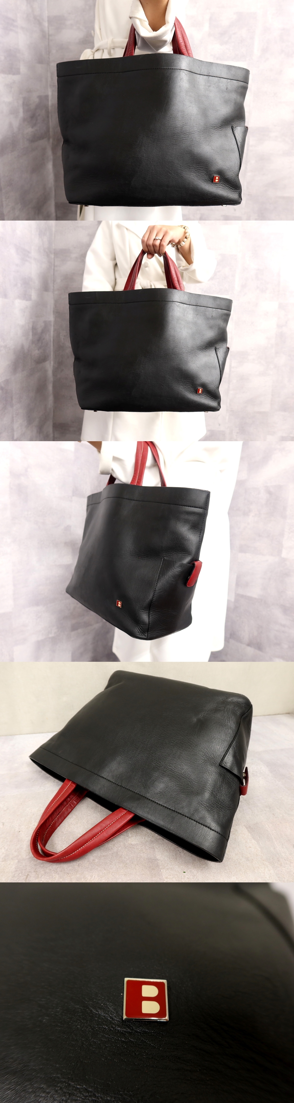 ●超美品●BALLY バリー●メンズ●Bロゴ●カーフ レザー 本革●トート バッグ●黒 赤●腕掛け●ヴィンテージ●A4 収納 かばん●Js63646 收藏