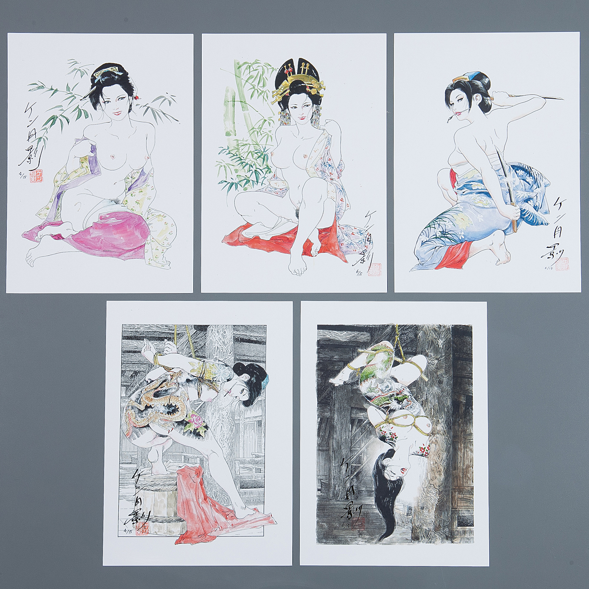 【1on1】真作 ケン月影 直筆サイン入 複製原画 エディション有 5枚セット / 官能劇画の第一人者 收藏