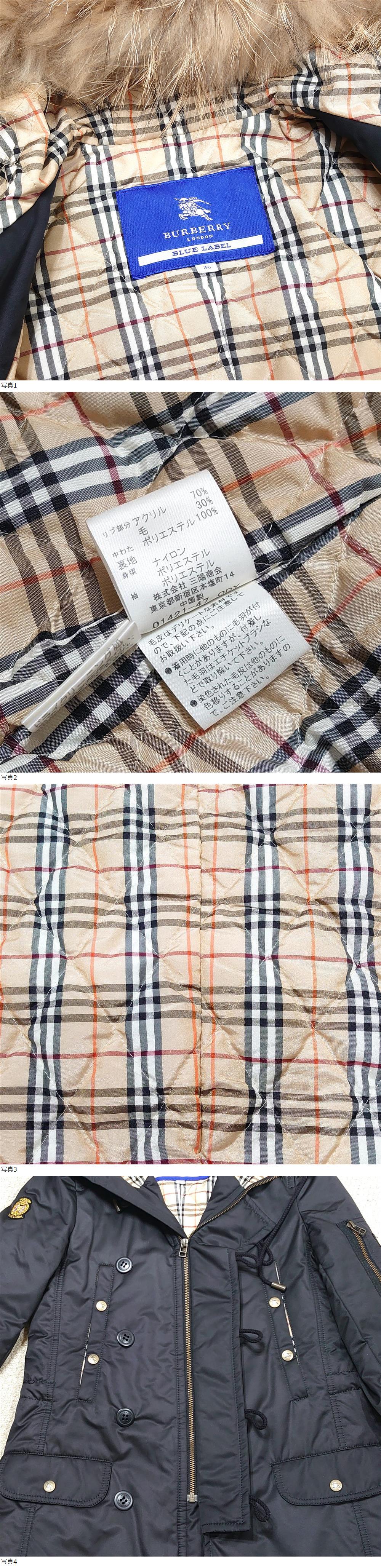 超美品 バーバリー ブルーレーベル ロンドン BURBERRY レディース コート ジャケット ブラック ノバチェック キルティング 天然ファー 36 收藏