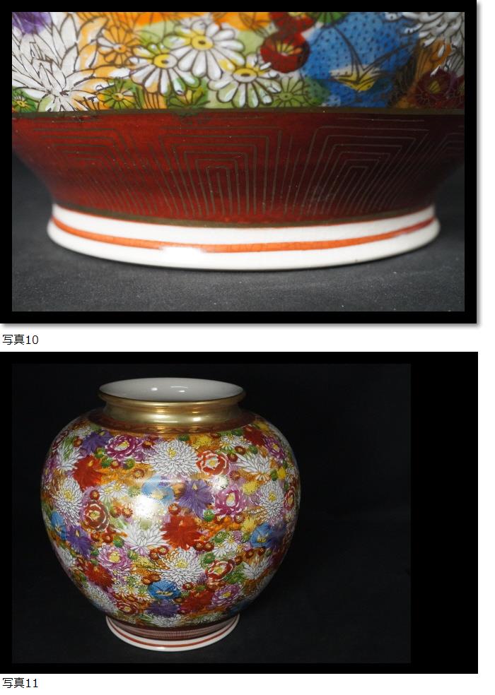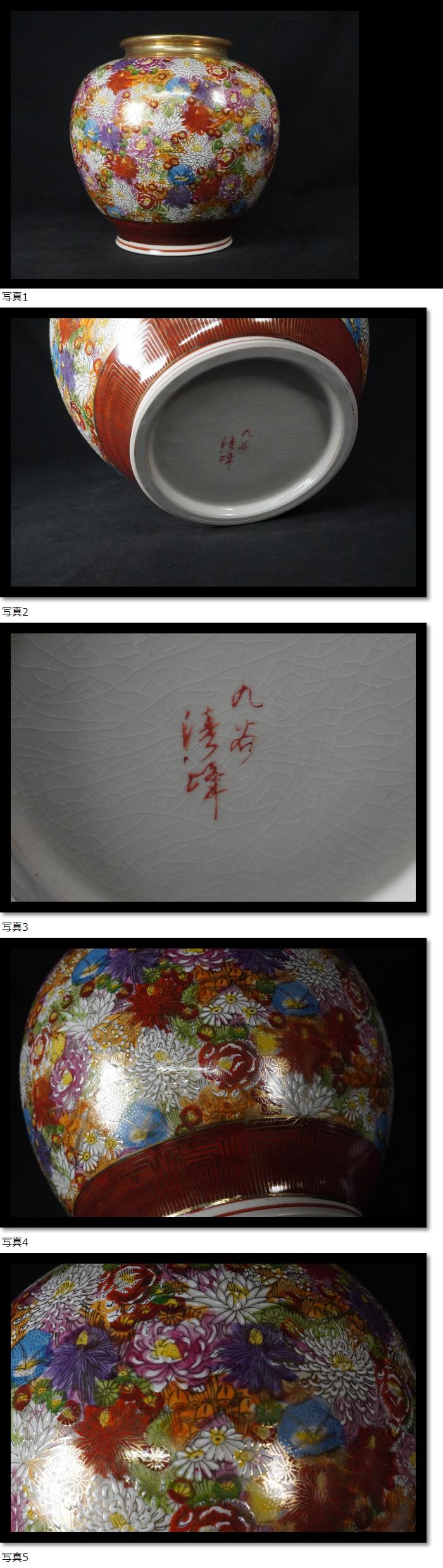 | 九谷焼 金彩 花詰め 花瓶 菊 在銘 美術工芸品 木箱付き |
