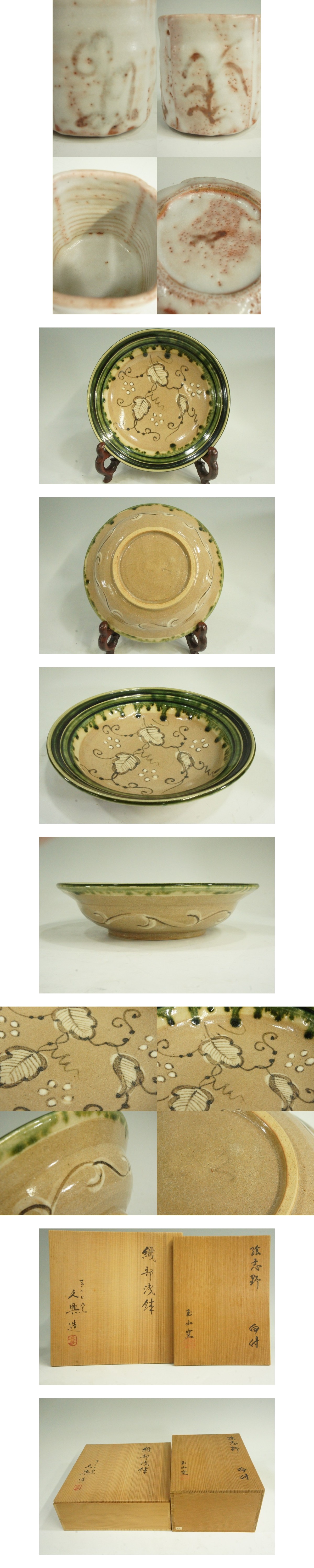 ●美濃焼 2点セット 玉山窯 絵志野向付五客組 子の日窯 大嶋久興 織部浅鉢