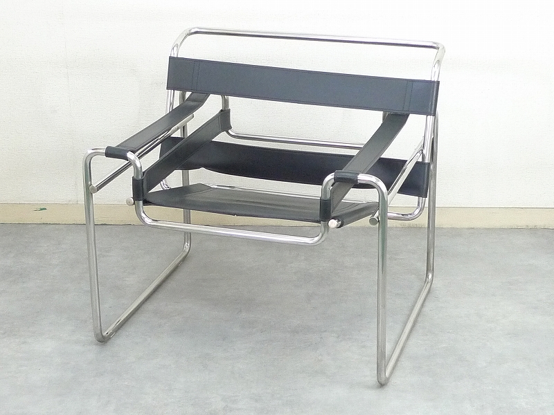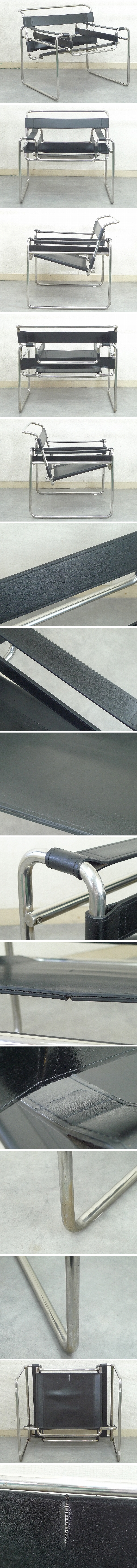 KCAB1232▲リプロダクト品?マルセルブロイヤー? ワシリーチェア・スチールパイプ椅子いすイス本革ブラックレザー 收藏