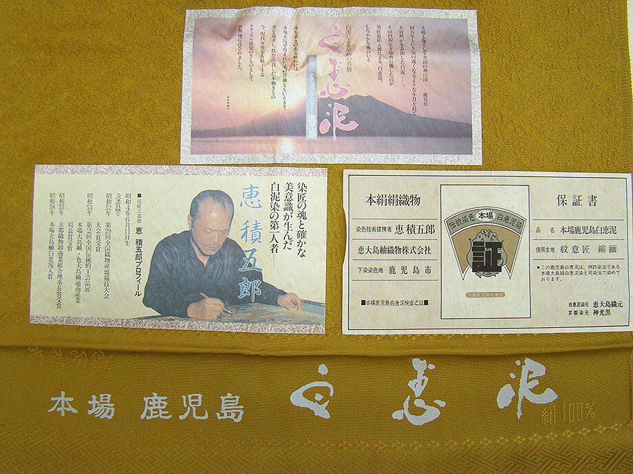 | 商品説明 | 本場鹿児島白恵泥、白泥染の第一人者「恵 積五郎」作、 とてもしなやかで柔らかなさらりりとした滑らかで着心地良い重めの極上ちりめん地の生地。 落ち着きある金茶色地に地模様入り。 |