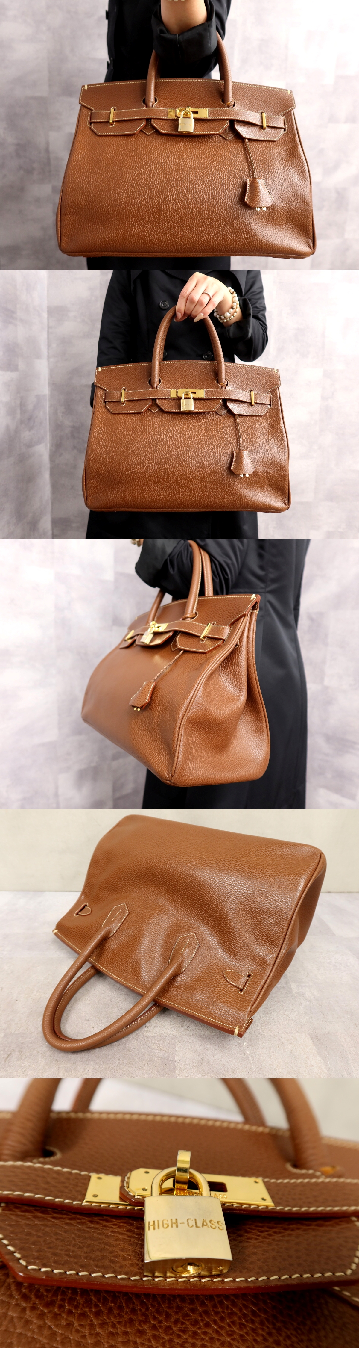 ●超美品●HIGH CLASS ハイクラス●カーフ レザー 本革●ハンド バッグ●ブラウン●ゴールド金具●腕掛け●A4 書類 収納 かばん●Js64249 收藏