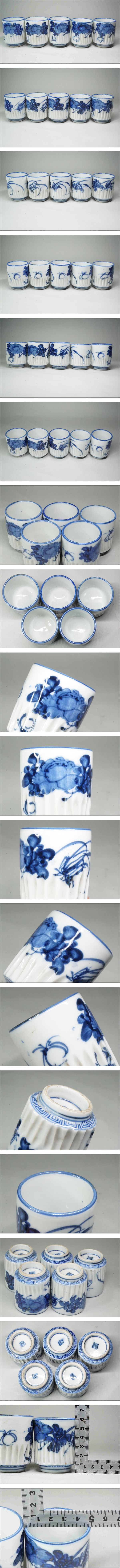 | 商品説明 | ベロ藍の珍しい花図覗き5客です。状態は目立った割れ欠けなく5客無傷品。寸法は高さ約6.1㎝、口径約5㎝。 |