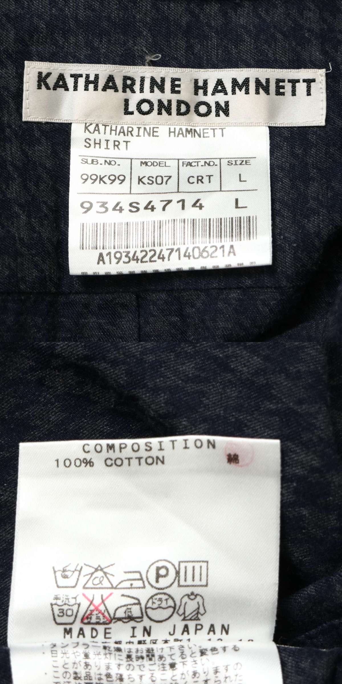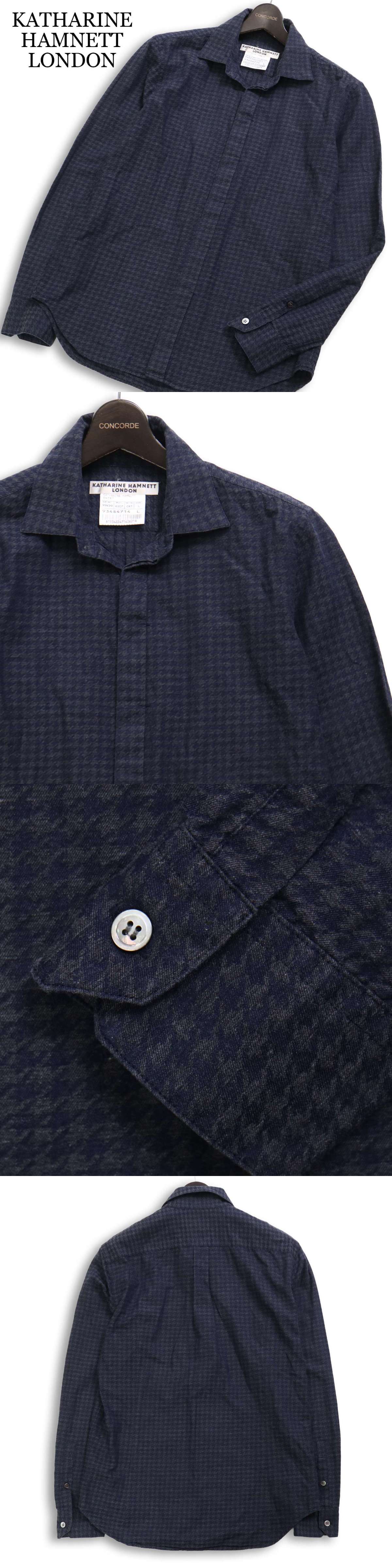 KATHARINE HAMNETT LONDON キャサリン ハムネット 秋冬★ 千鳥柄 長袖 シャツ Sz.L メンズ 日本製 收藏