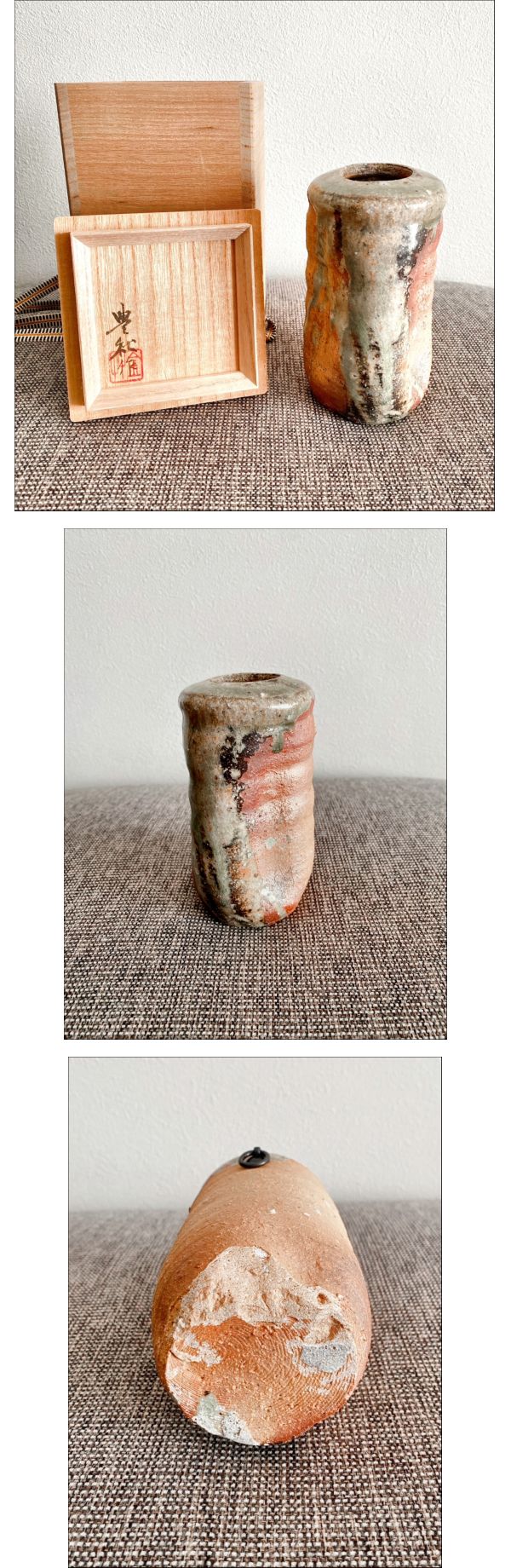 | 商品説明 | 品名:掛花生 作家:秦 豊秋 寸法:直径80㎜ 内径37㎜ 高さ145㎜ 状態:未使用 目立った汚れ、擦れは見られませんが、保管品であることをご了承ください。 購入時の付属の箱と共に、プチプチや紙で保護しお送りします。 |