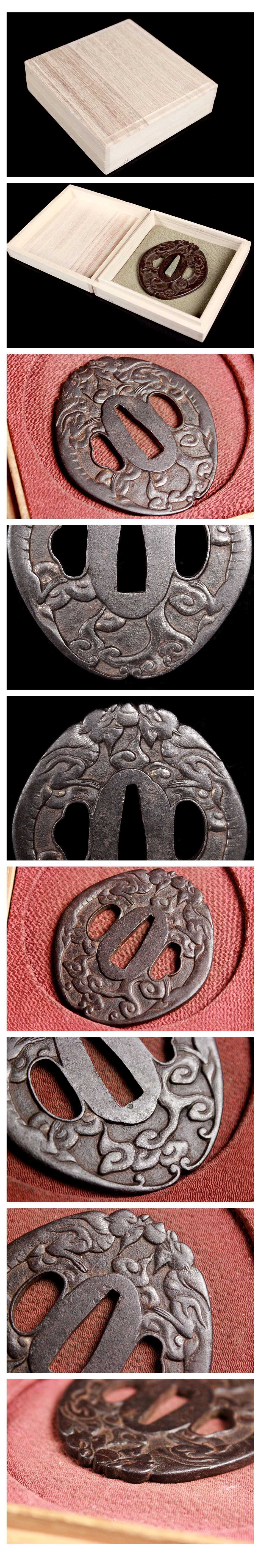 | 【喜楽】双龍鍔 刀装具武具!! 木箱 112219 | - |