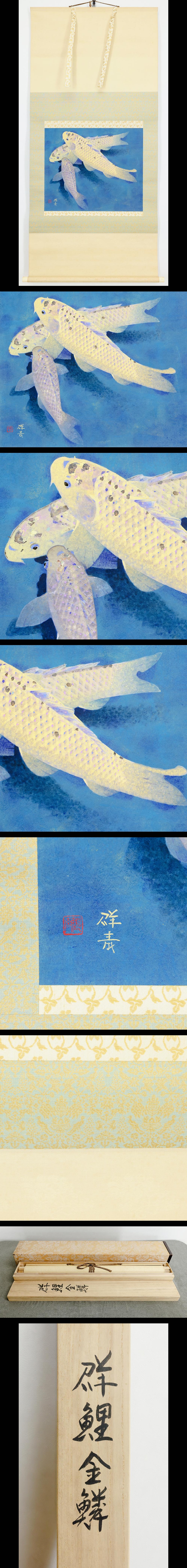 【真作】【WISH】利倉群青「群鯉金鱗」日本画 掛軸 太巻 共箱二重箱 金落款 金箔・金泥仕様 ◆華やぎと吉祥 〇日展会友 #26010005 收藏