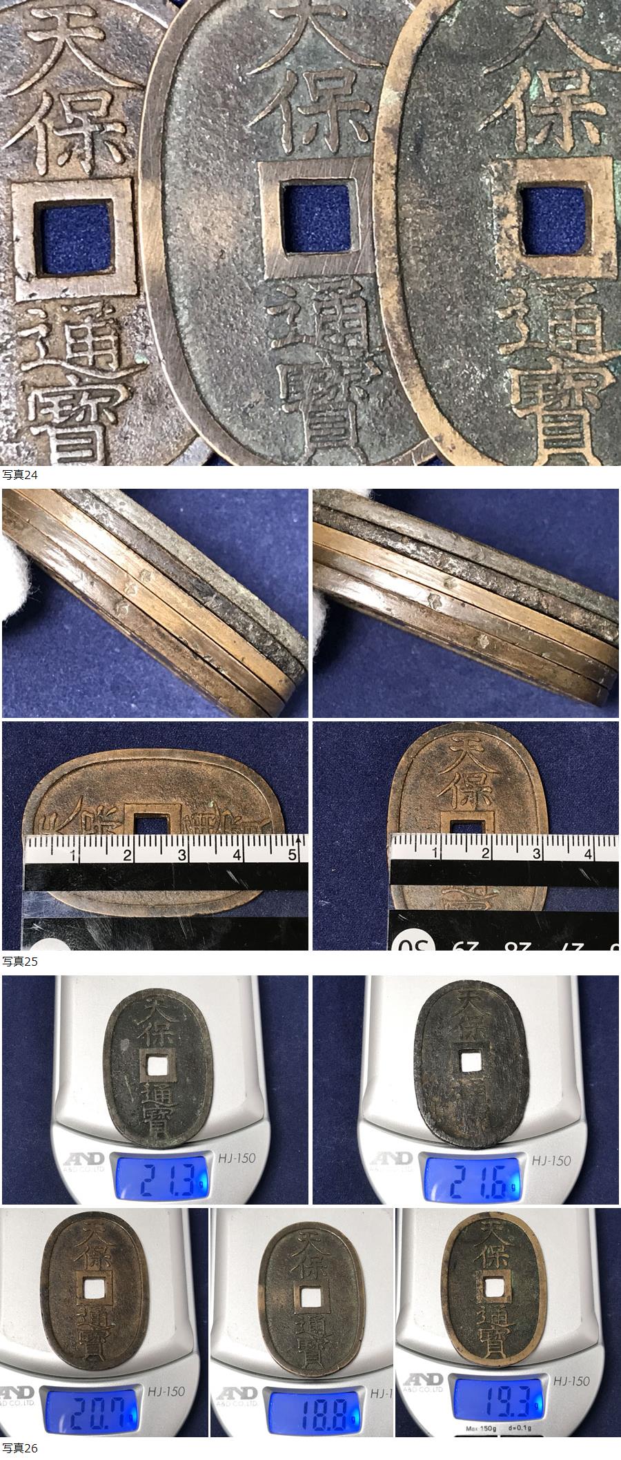 ◆天保通宝 5枚 重量 21.6g 21.3g 20.7g 19.3g 18.8g天保通寳 當百 銅銭 穴銭 母銭 子銭 日本 古銭 アンティーク コレクション 16-11 收藏