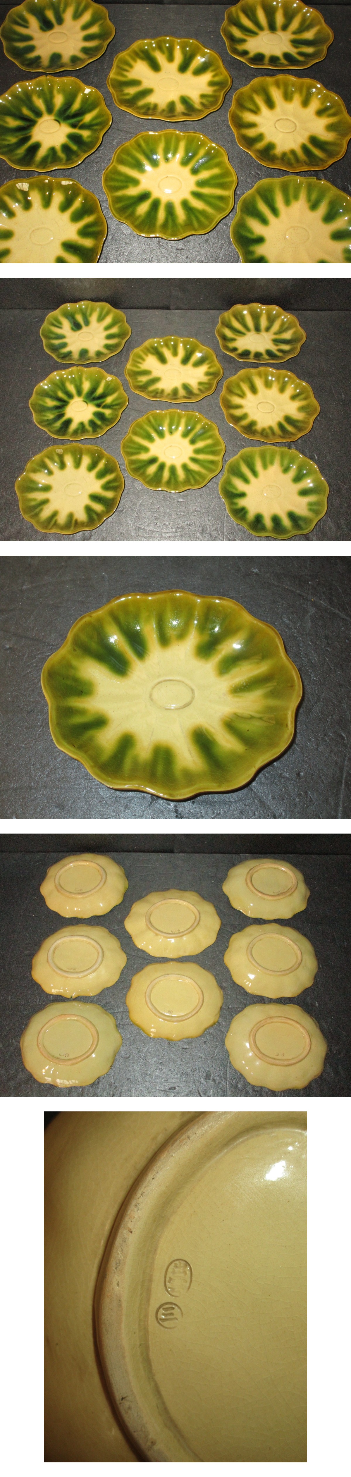 【懐石道具】時代 布志名焼『出雲』印 葉型(蓮型)皿 8客 (7客無傷・1客小ホツ) /検索 淡路民平焼 收藏