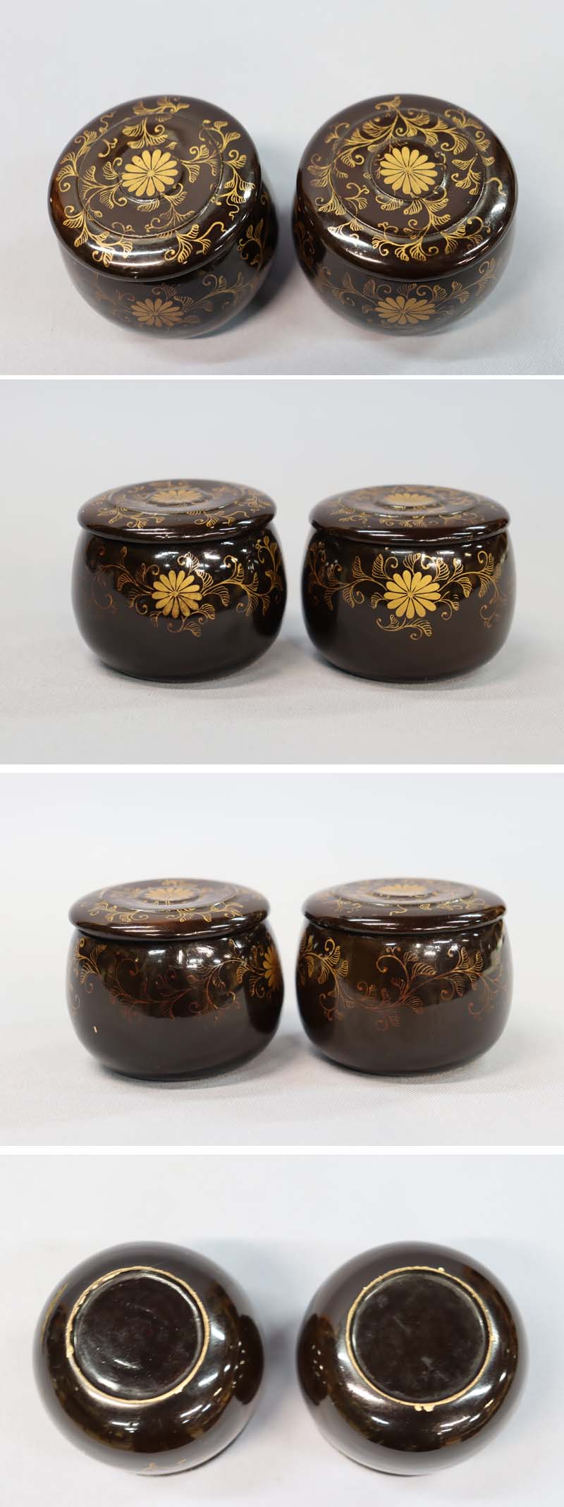 側面に2ヵ所、小さな蒔絵のメクレがあります (画像下から3枚目参照)。