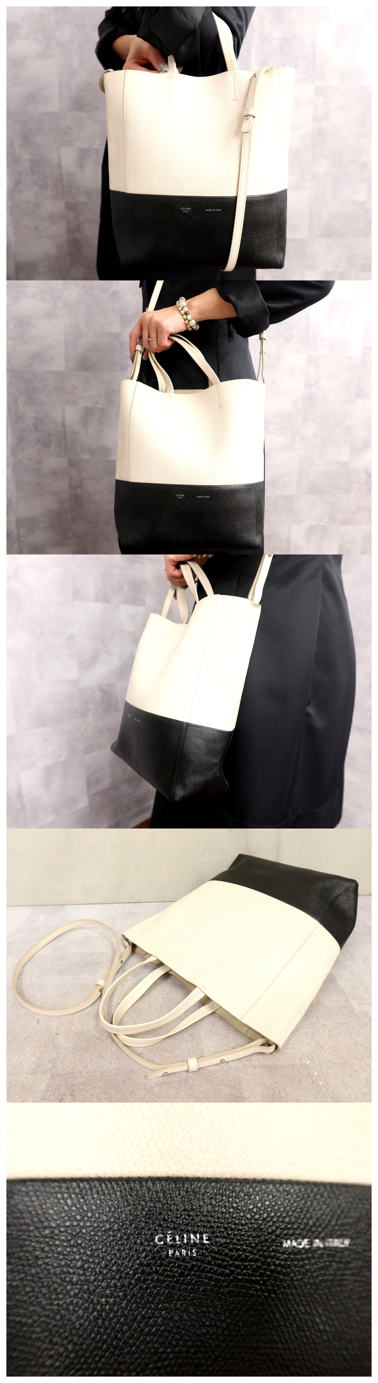 ●超美品●セリーヌ●バーティカルカバ●バイカラー●カーフ レザー●2way トート ハンド バッグ●アイボリー 黒●SV金具●B5●Js64462 收藏