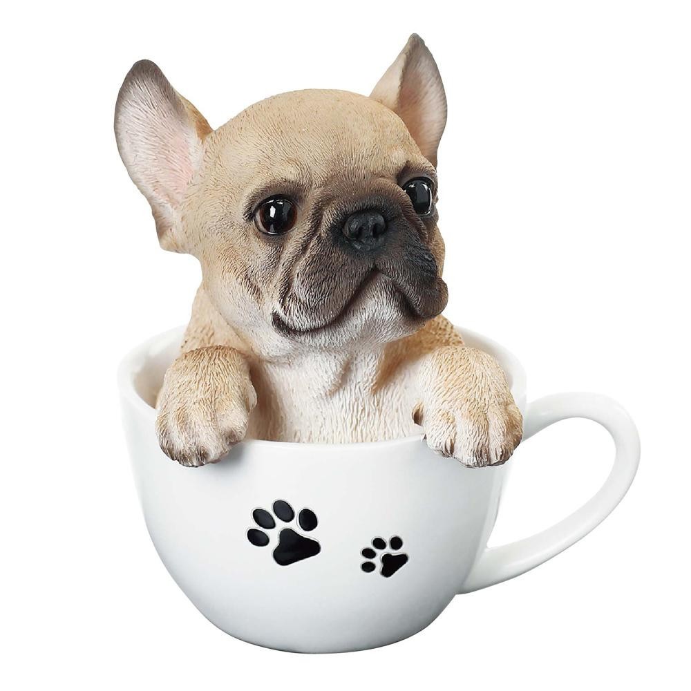 カップに入ったフレンチ・ブルドッグのオーナメント。お部屋の雰囲気を可愛らしくします。 |