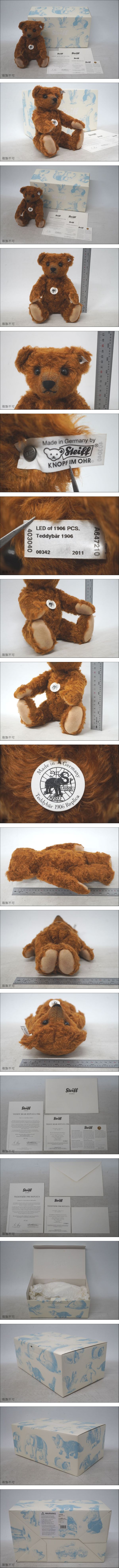 【M02-02】 Steiff シュタイフ TEDDY BEAR REPLICA 1906 テディベア レプリカ 342/1906 元箱有 証明書付 ぬいぐるみ 人形 ドイツ製 現状品 收藏