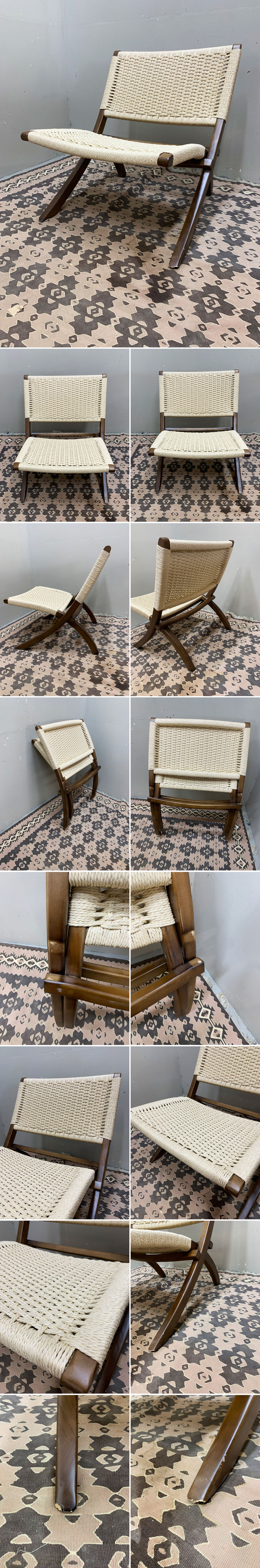 ■EM058A/未使用保管品/北欧スタイル/木製/折りたたみ/チェア/ラウンジチェア/ペーパーコード/サファリチェア スタイル 收藏