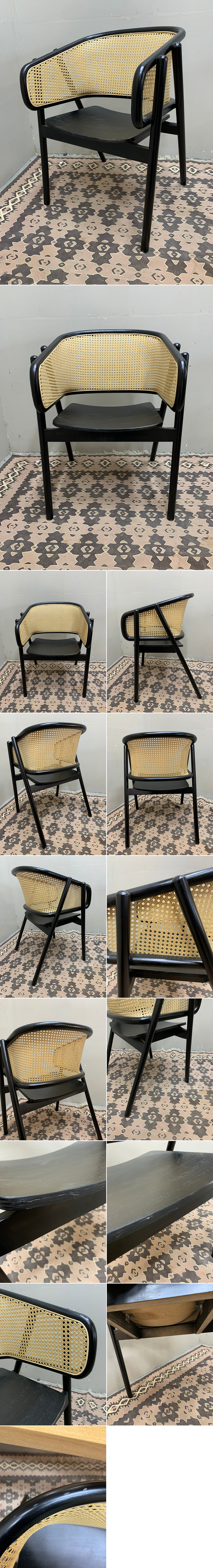 ■EM051A/未使用保管品/モダンデザイン/ラタン/アームチェア/黒 /木製フレーム/籐編み/ダイニングチェア/北欧スタイル 收藏