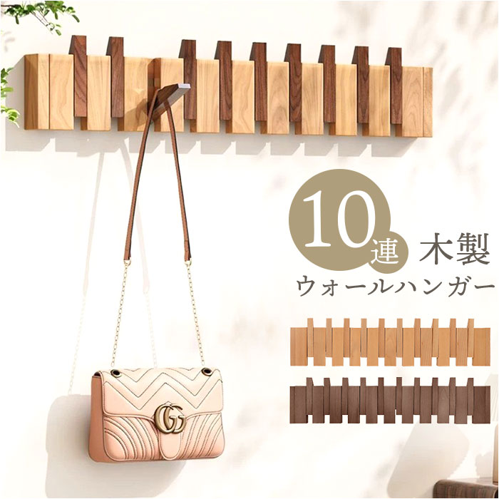 ☆ ナチュラル×ブラウン ☆ ウォールハンガー10連 壁掛けフック おしゃれ 10連 ハンガーラック 壁掛け フック ウォールハンガー 收藏