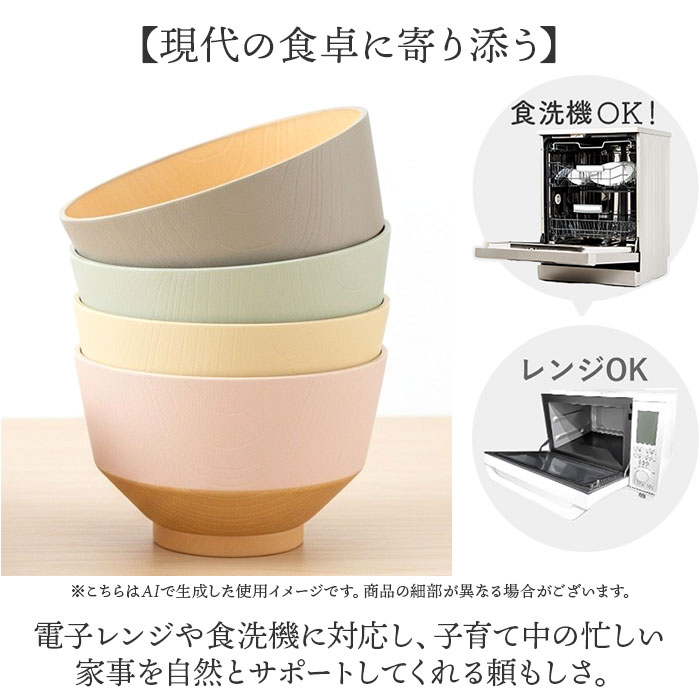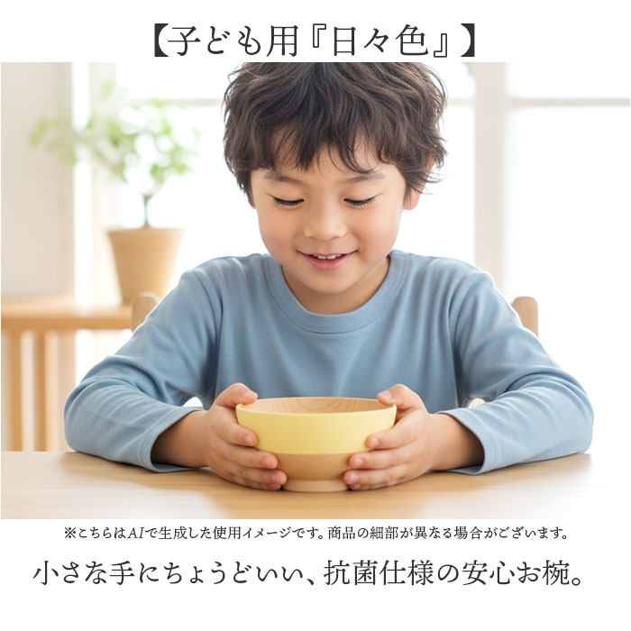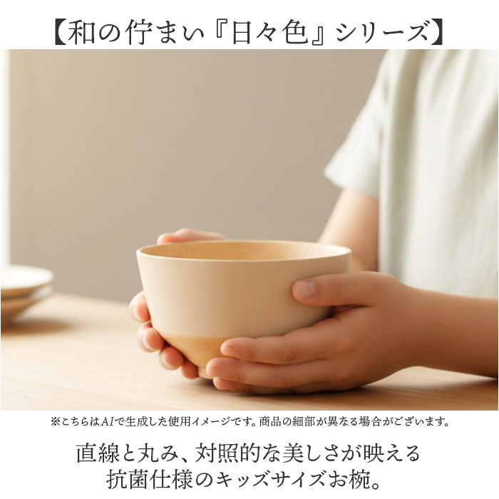 | 商品説明 | ・・【子ども用『日々色』】 ・小さな手にちょうどいい、抗菌仕様の安心お椀。 ・【和の佇まい『日々色』シリーズ】直線と丸み、対照的な美しさが映える抗菌仕様のキッズサイズお椀。 ・【抗菌仕様の安心感】ウレタン塗装に抗菌加工を施した日本製のお椀で、お子さまも清潔に使える毎日を実現◎ ・【現代の食卓に寄り添う】電子レンジや食洗機に対応し、子育て中の忙しい家事を自然とサポートしてくれる頼もしさ。 ・【対照的な美フォルム】汁椀は凛とした直線美、飯椀はやさしい丸み、小さな手にも持ちやすいちょうどいいサイズ感〇 ・【重ねて収納できる】スタッキング可能で場所を取らず、軽量な樹脂製で割れにくくお子さまにも安心! ・【くすみ色の落ち着き】木目調と美しい伝統色の静かな色合いが、家族の食卓に和やかな彩りを添える♪ |