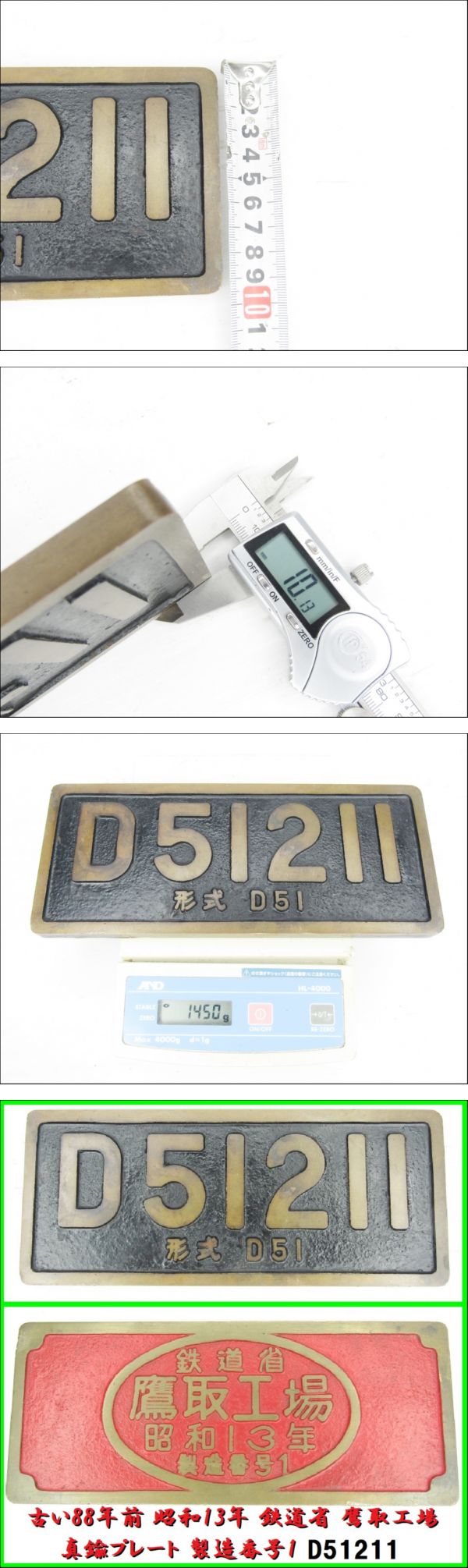激レア 古い88年前 砲金 真鍮プレート D51 本物 鉄道省 鷹取工場 昭和13年 製造番号1 超希少 真ちゅう サボ 1938年 D5111 国鉄 鉄道院 收藏