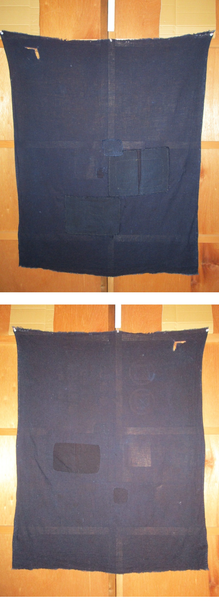 【昔古布】大正期頃 藍染木綿 襤褸BORO 無地 1幅(広幅) (長106) ●継ぎ接ぎ・刺子・インディゴ・ボロ布● 收藏
