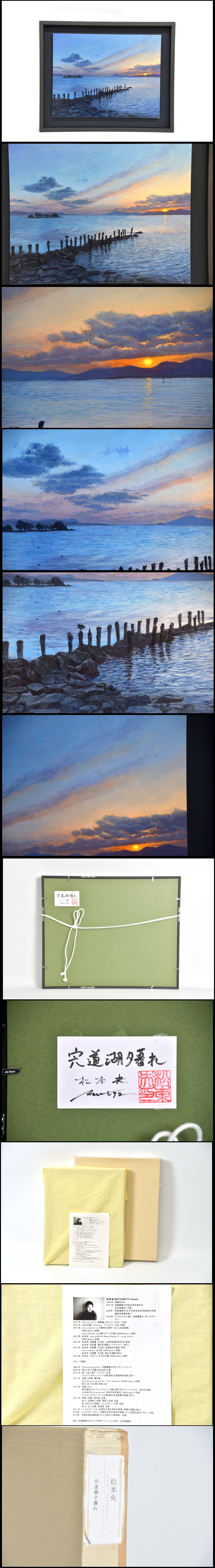 413(真作) 松本央 「宍道湖夕暮れ」百貨店購入 島根県●リアリズム 油彩 パネル 額装 京都 洋画家 油絵 アート 絵画 美術 收藏