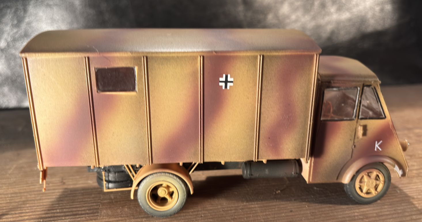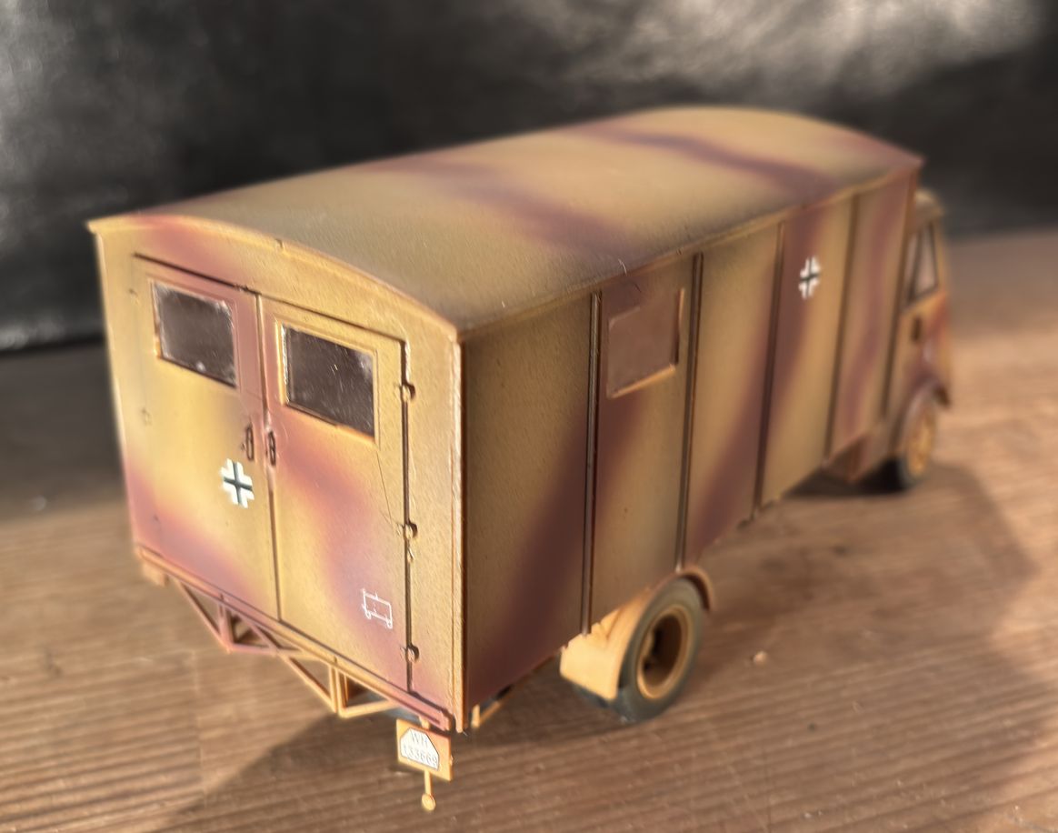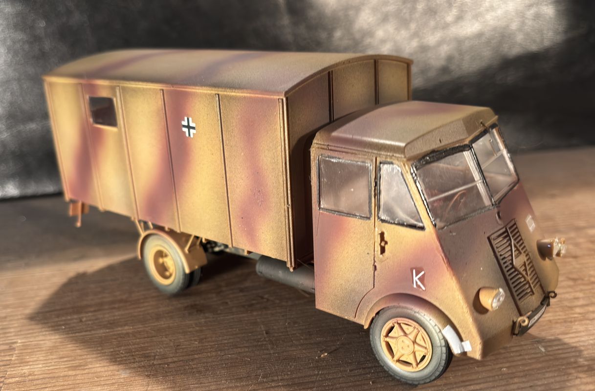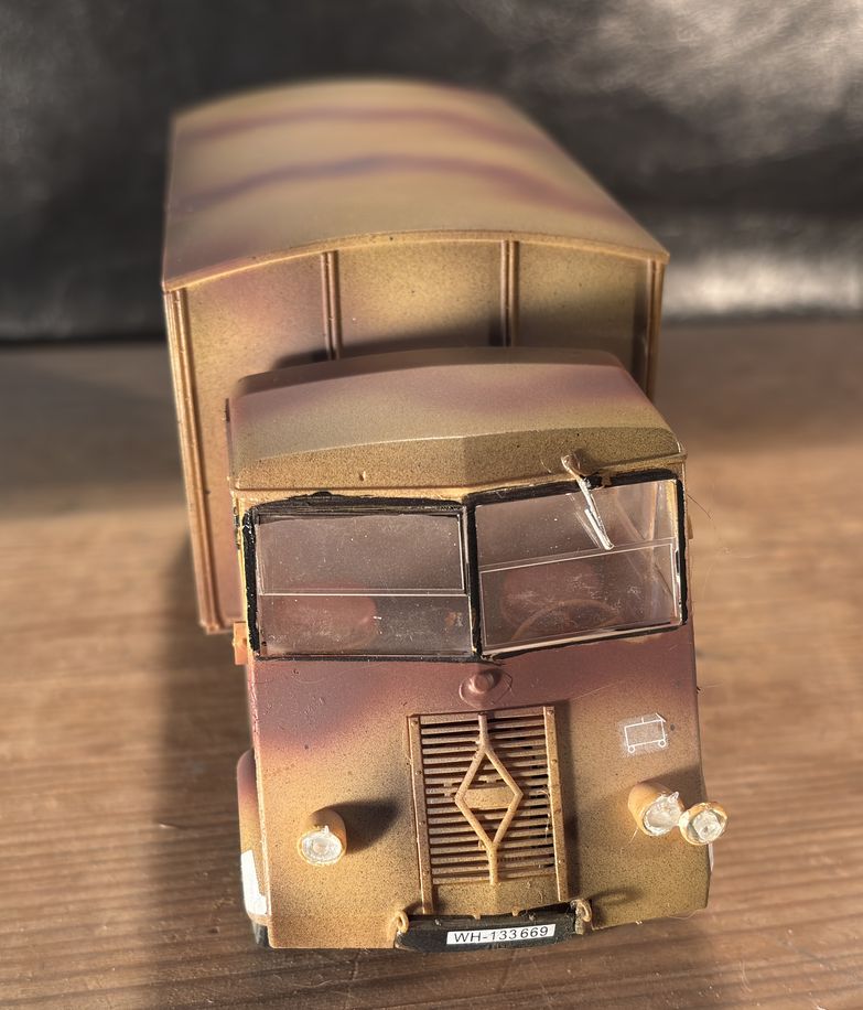 元キットはアンビュランスでしたが、ただのカーゴトラックもあったようなのでそちらで仕上げてます。 本来はフランス軍の車両ですが、戦場写真は圧倒的にドイツ軍鹵獲あとの写真が多いので、そちらに準じてます。
