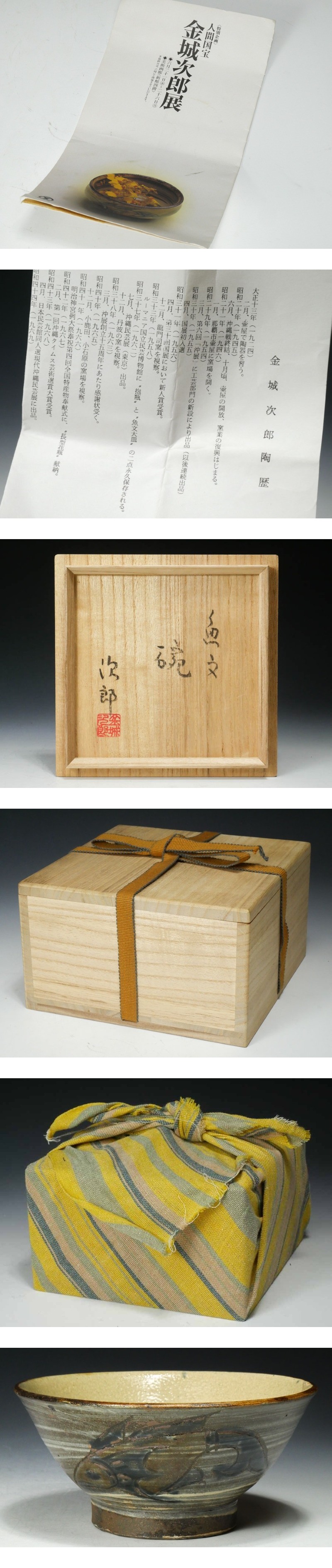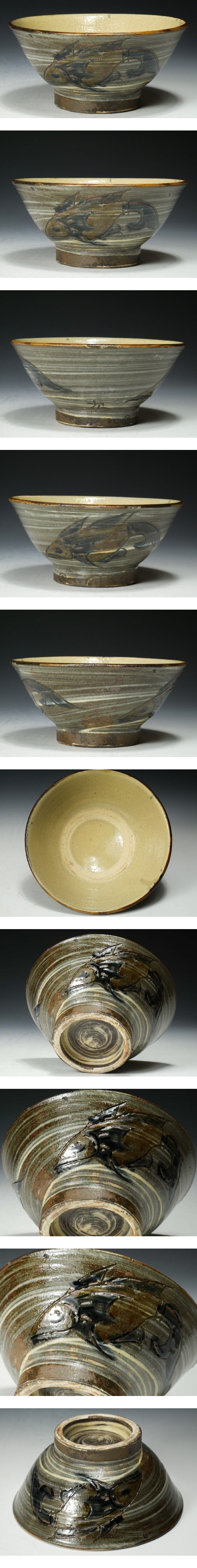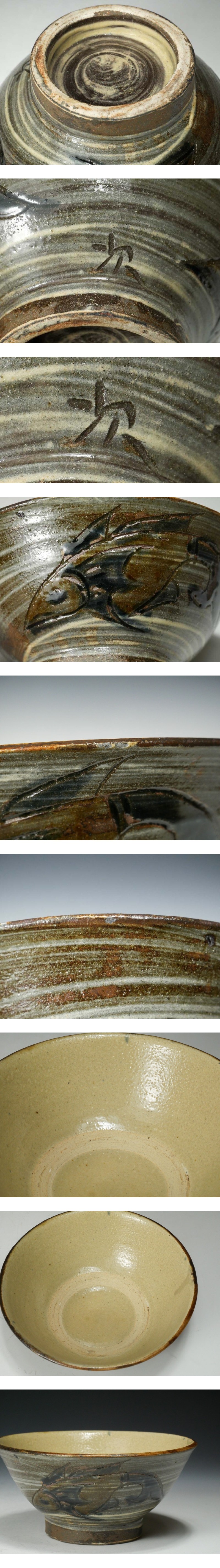 【 幸 古寺の蔵 】人間国宝『金城次郎』造 壷屋焼 魚文 茶碗 共箱◆当店保証 茶道具『茶人の言葉』 收藏