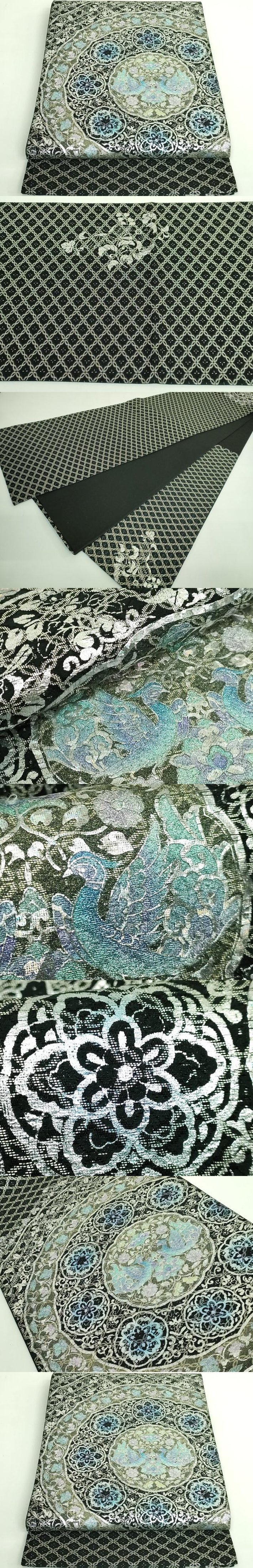 平和屋着物●極上 太鼓柄袋帯 双鳥花文 黒地 金彩 逸品 DZAB4561kh6 收藏