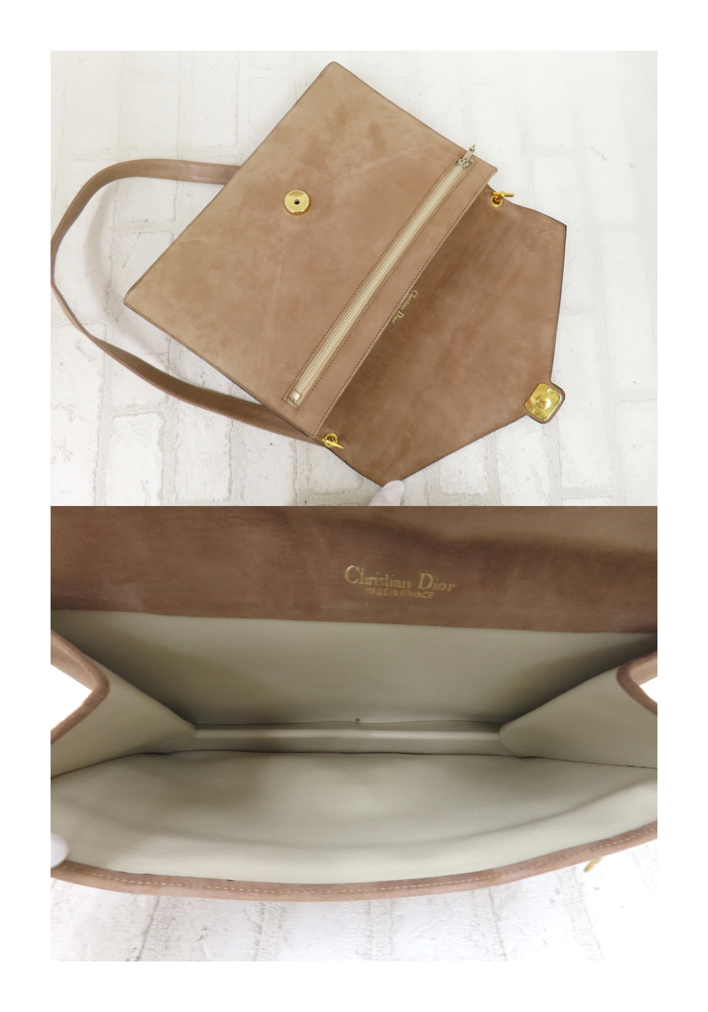 美品◆Christian Dior クリスチャン・ディオール◆スエード カーフ レザー 本革◆ショルダー バッグ◆ベージュ系 G金具◆フラップ◆A15774 收藏