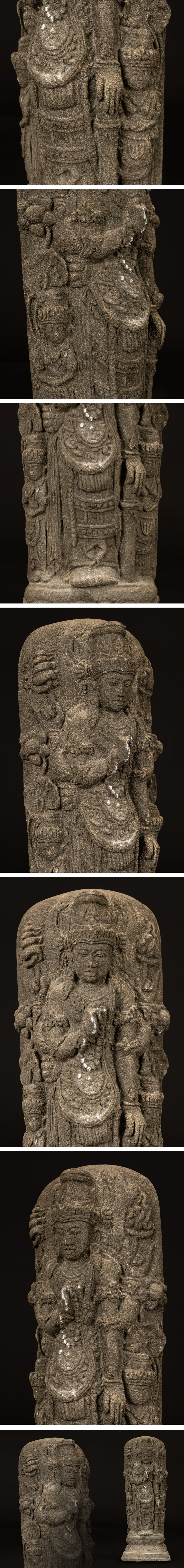 ●石彫 菩薩立像 観音菩薩系 宝冠・瓔珞文 風化の味わい 仏像 仏教美術● 收藏
