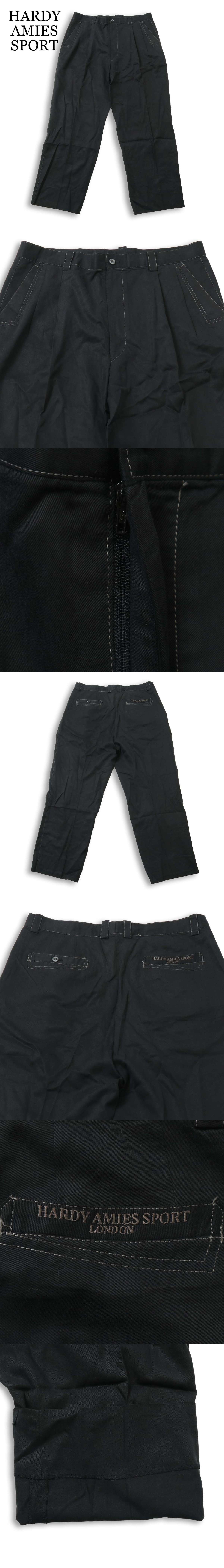 HARDY AMIES SPORT ハーディエイミス 通年 ロゴ刺繍★ テンセル スラックス パンツ Sz.95 メンズ 黒 日本製 大きいサイズ 收藏