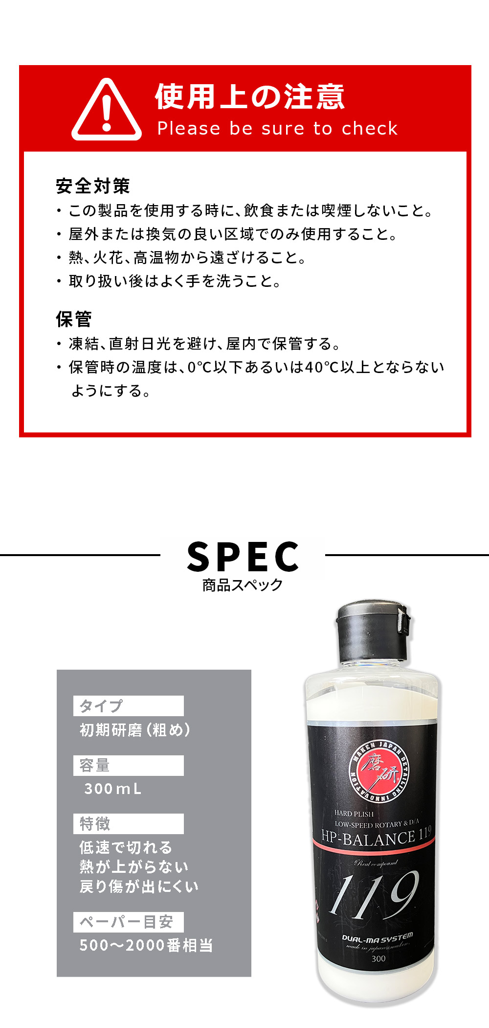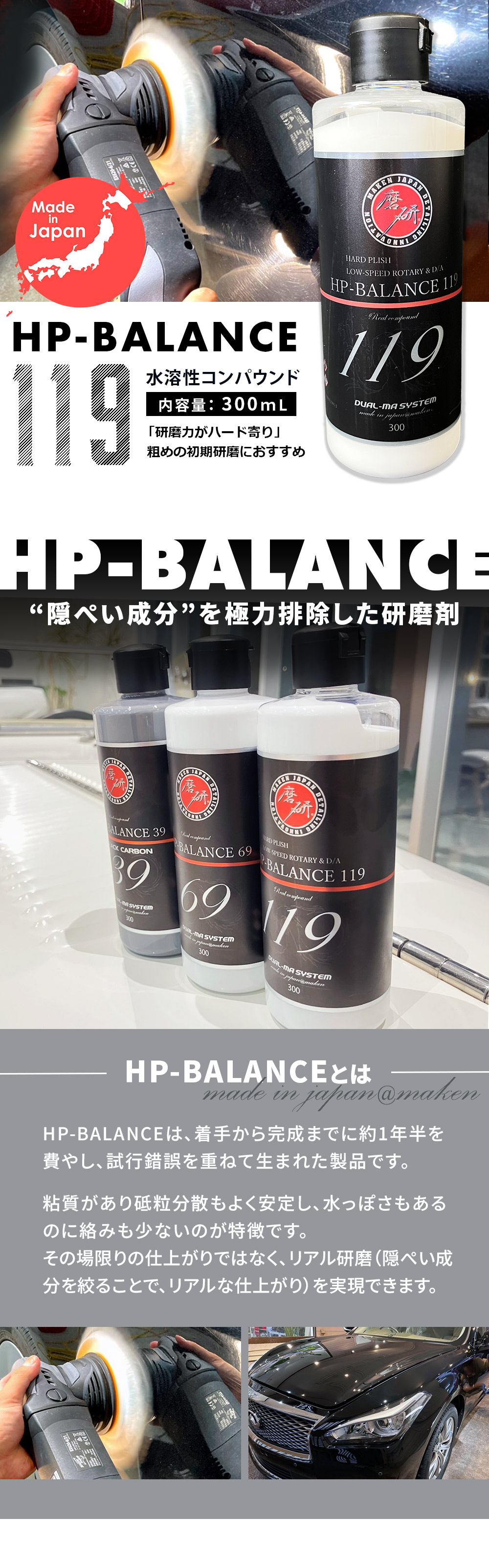 コンパウンド 研磨剤 HP-BALANCE 【 119 】 隠ぺい成分排除 ハード 超低速 液体コンパウンド 洗車 粗め 焼き付き 戻り傷 初期研磨 磨研 收藏
