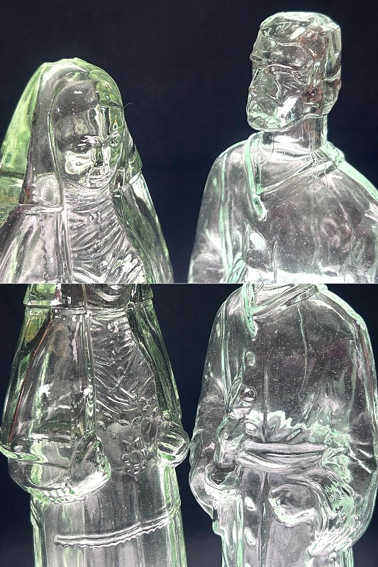 ◇神聖な輝き/祈りの造形【ガラス製 牧師&シスター(修道女・修道士/Pastor・Sister)花器 2体セット】一輪挿し ヴィンテージ R02264 收藏