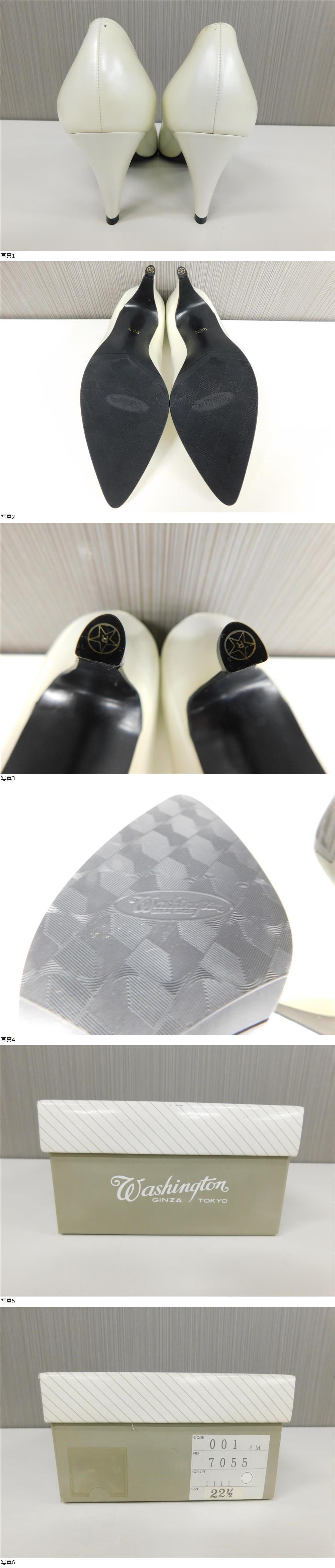 WASHINGTON GINZA TOKYO 銀座ワシントン レディース パンプス 22.5cm ホワイト レザー 白 22 1/2 未使用 長期保管品 激安1円スタート 收藏