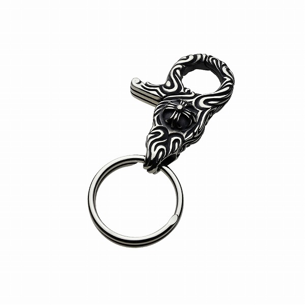シルバー アクセサリー 唐草 クリップ キーリング付き バネ式 キーホルダー 十字架 クロス アラベスク メンズ s0211 收藏